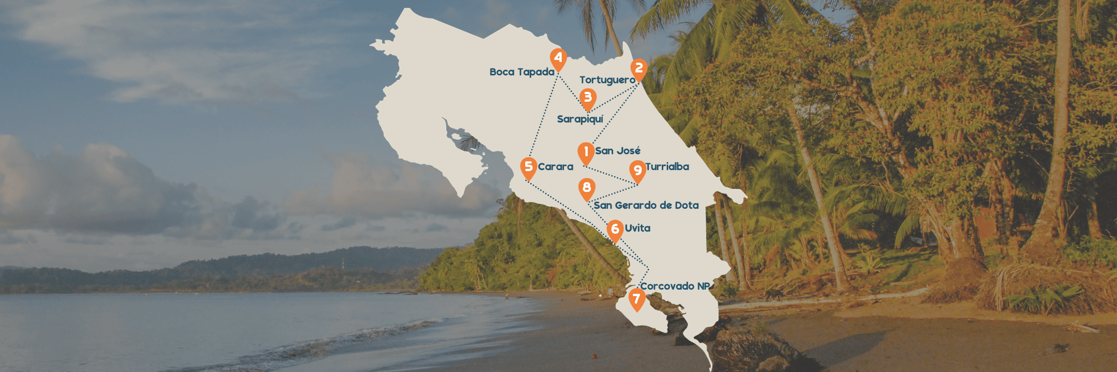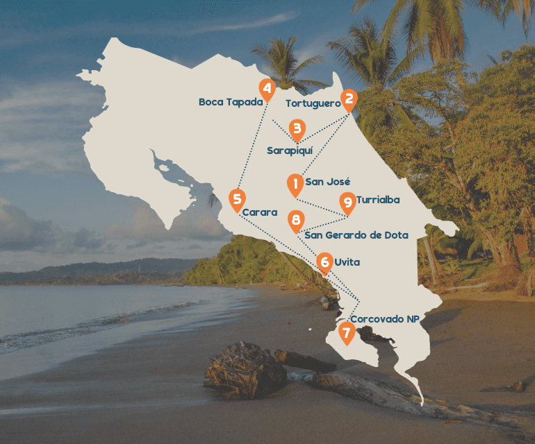 San José - Tortuguero - Sarapiquí - Boca Tapada - Carara - Uvita - Corcovado National Park - San Gerardo de Dota - Turrialba - San José