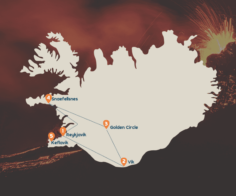 Reykjavik – Vik – Golden circle – Snaefellsnes – Keflavik